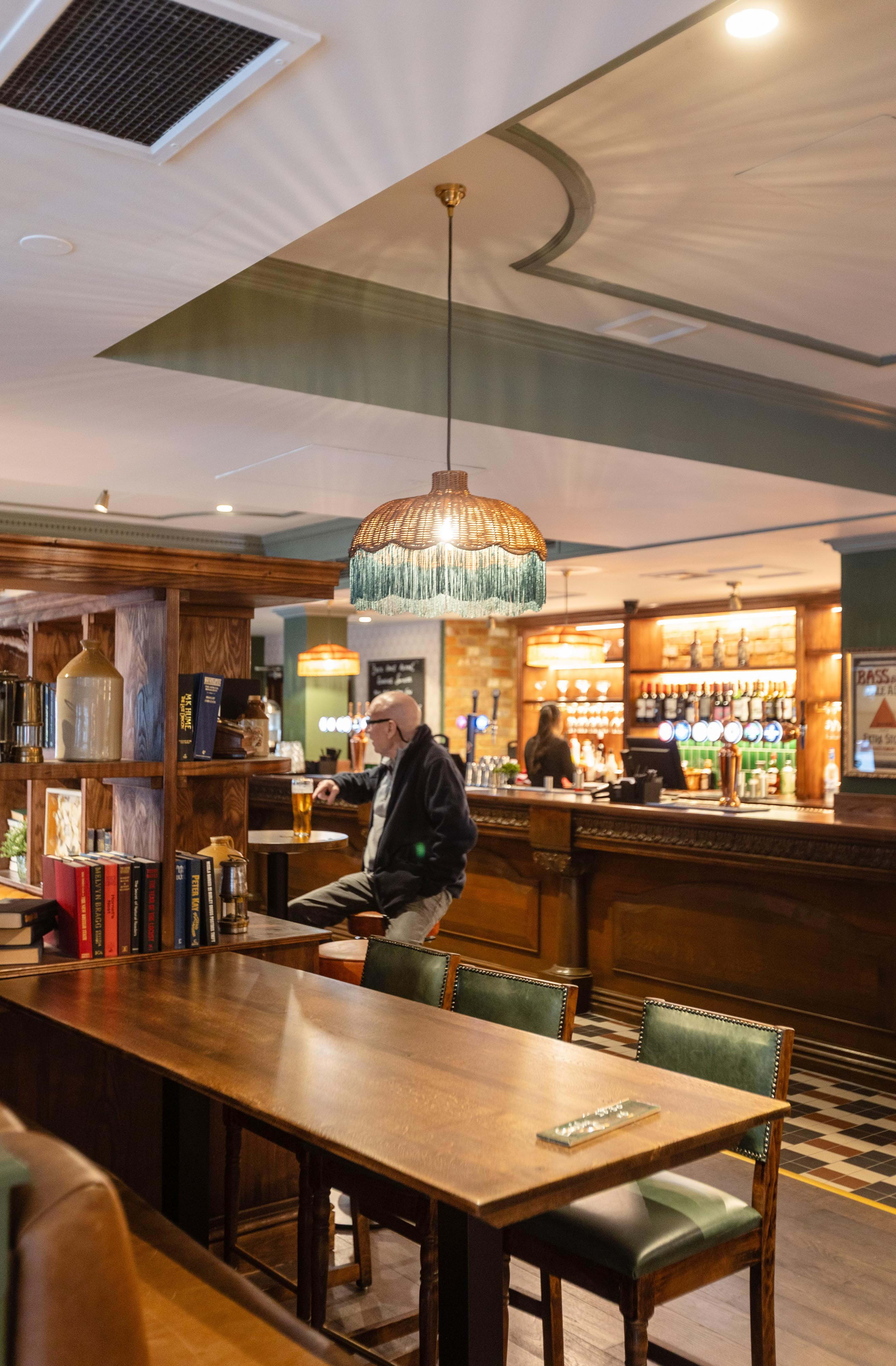 Once a weary local watering hole, The Falconbrook has been beautifully refurbished with solid wood furnishings, soothing pastel tones, and pretty lighting fixtures, striking an elegant balance between a cosy drawing room and a 1920s speakeasy. There's also a covered and heated terrace in the back, with wood panelling for a snug cabin vibe, and all are welcome both inside and out, children and dogs included.