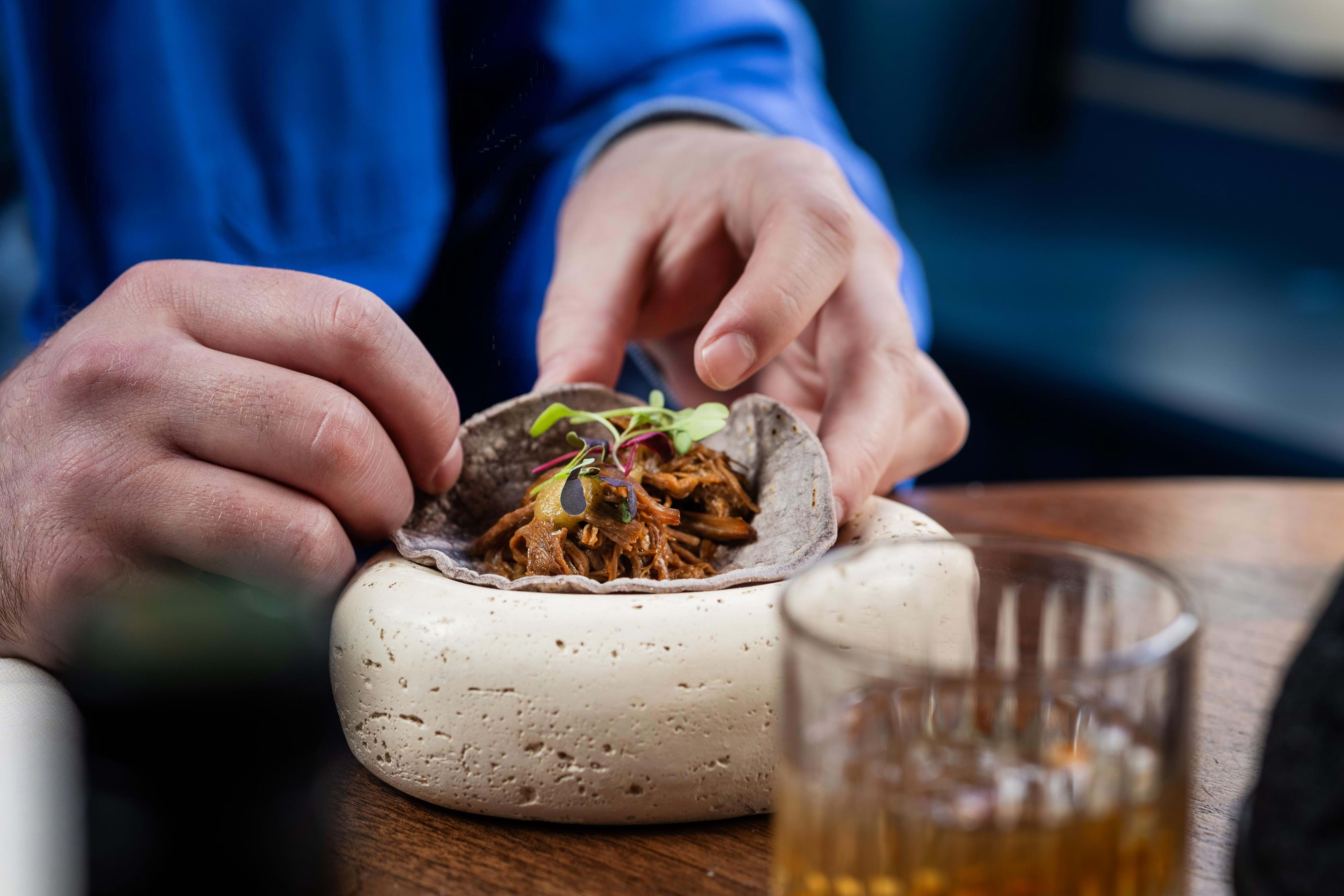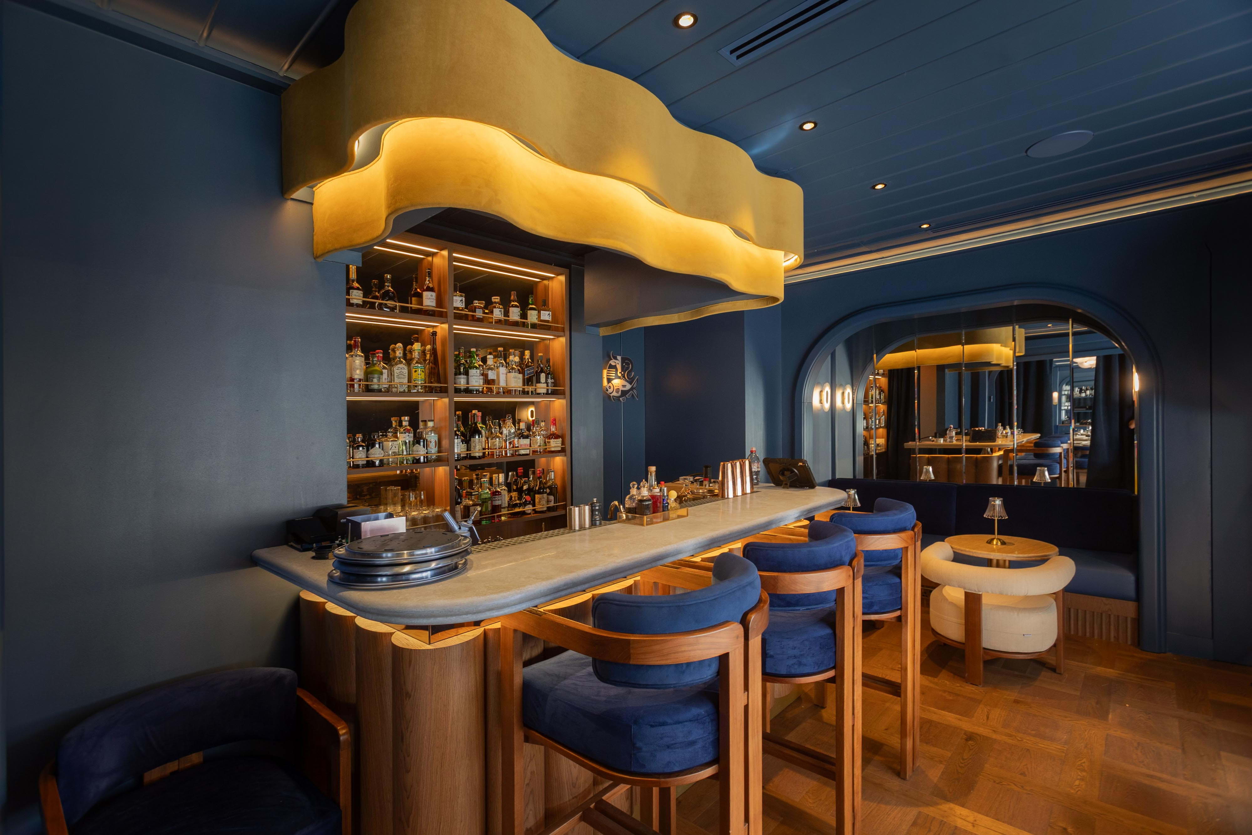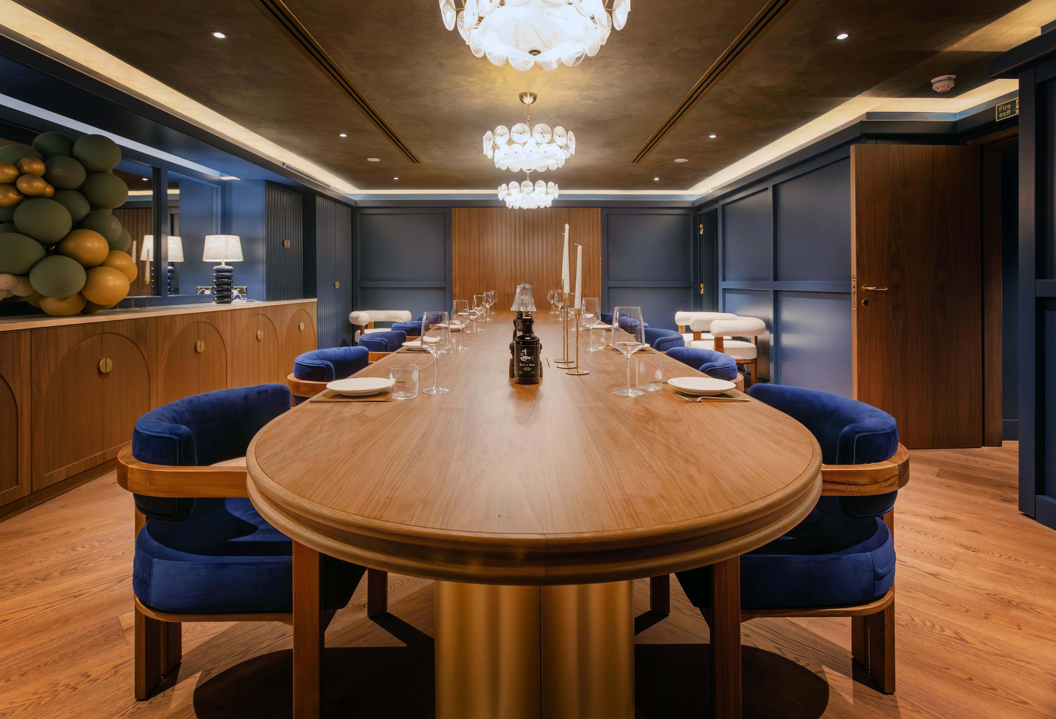 The main dining room at Beef & Bass is decked out in suave blue and cream tones, with the sophisticated ambience elevating even the most casual of meals into a memorable occasion. After your meal, you can head to the speakeasy-style cocktail bar for an expertly mixed sharpener, while larger groups can book the elegant private dining room – fitted with a built-in screen, it's suitable for everything from corporate gatherings and karaoke nights to group screenings and live sports.