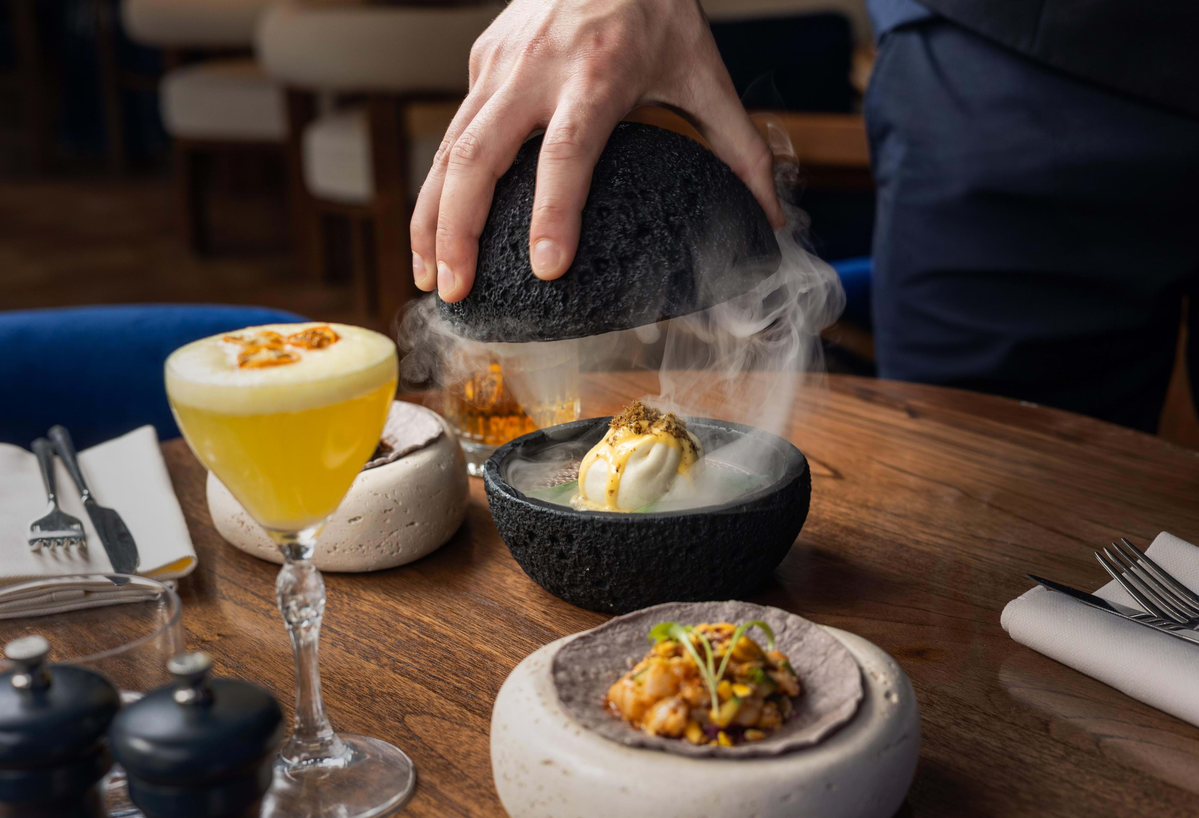 Revolving around the two premium ingredients that give the buzzy restaurant its name – rich, 30-day-aged beef and sustainably sourced wild seabass – the menu embodies the fine craft of charcoal grilling. Meticulous care is paid to every dish to ensure just the right char, with a selection of signature sauces and sides designed to perfectly complement the fire-lashed mains for a truly satisfying dining experience. On Sundays, the restaurant also serves a traditional roast dinner with all the trimmings.