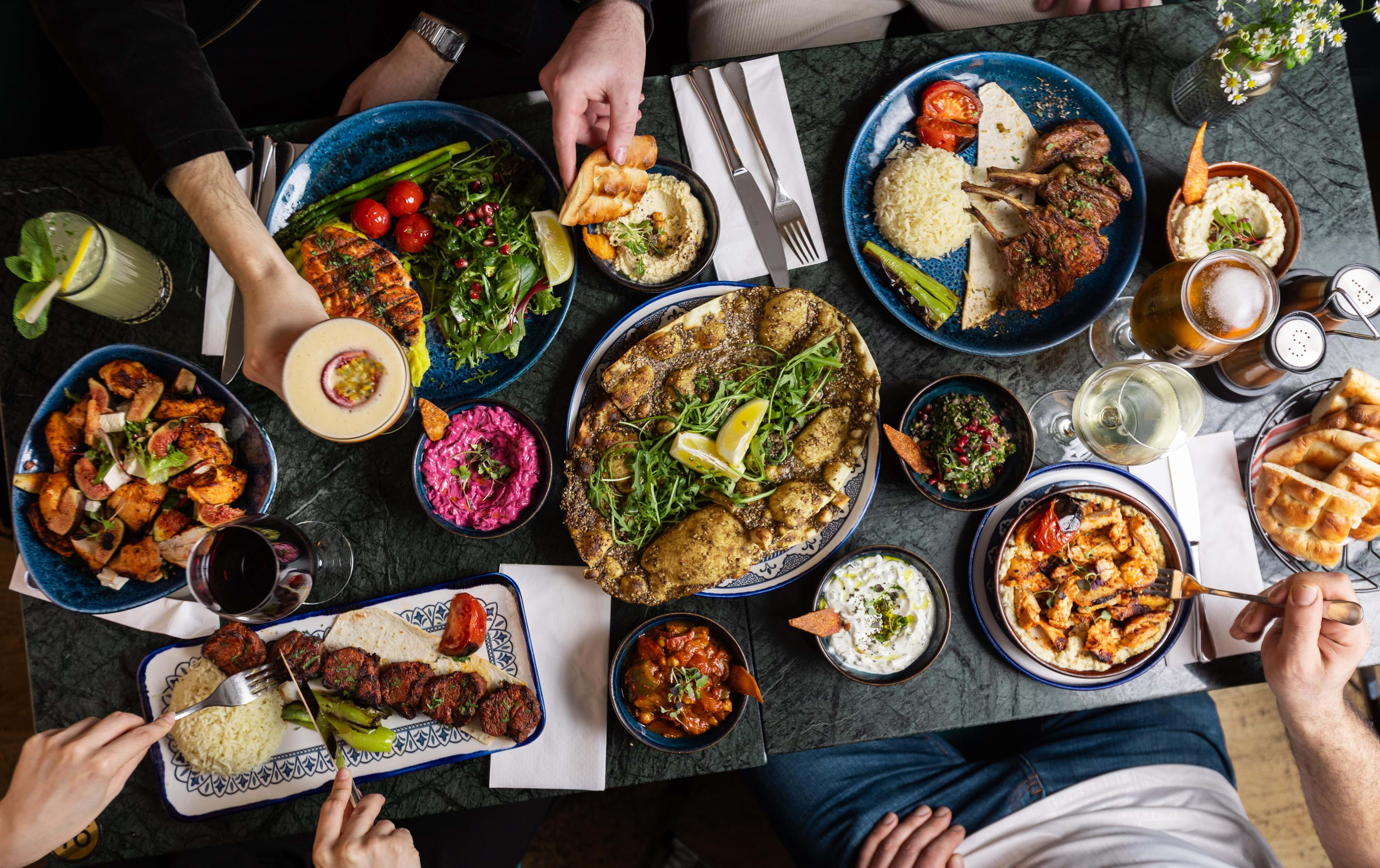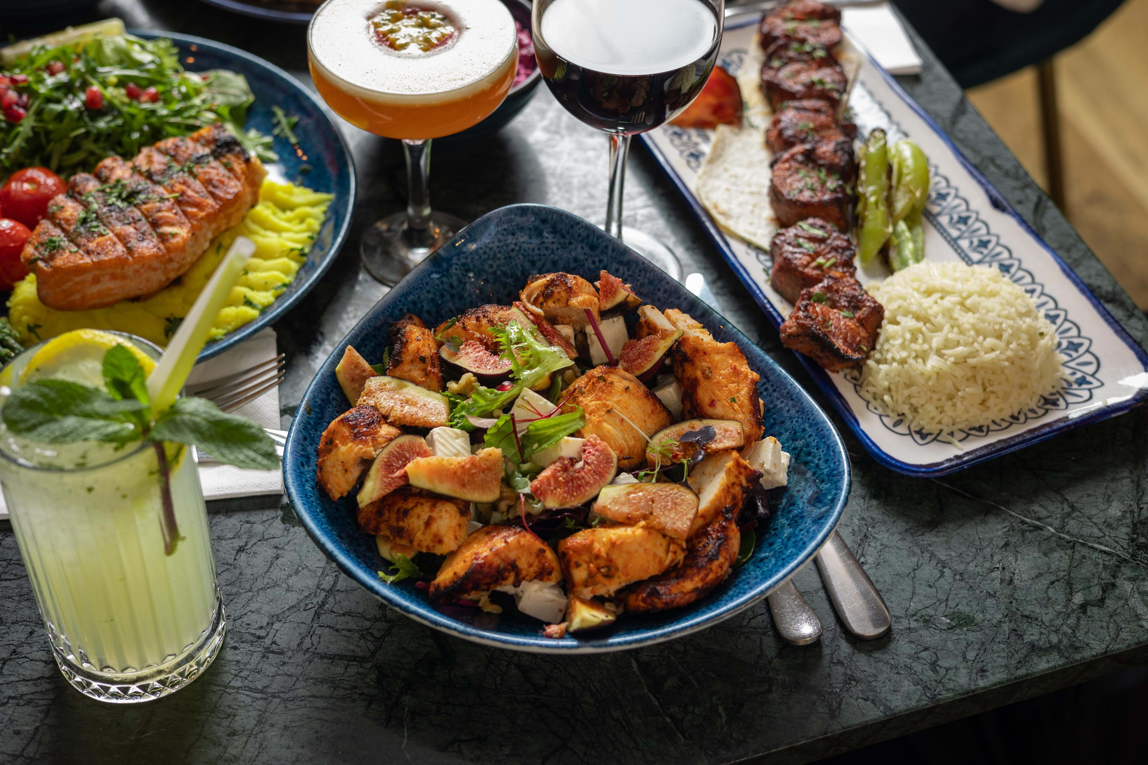Ask the bartender to whip you up a signature pomegranate margarita or a refreshing Persian fizz to go with your meal, order a bottle of fine wine for the table, and round things off with pistachio baklava or an indulgent kunefe dessert. On colder days, a cup of traditional sahlep — a creamy hot drink made from wild orchid root and milk — offers a comforting finish to a meal that satisfies the soul as well as the body.