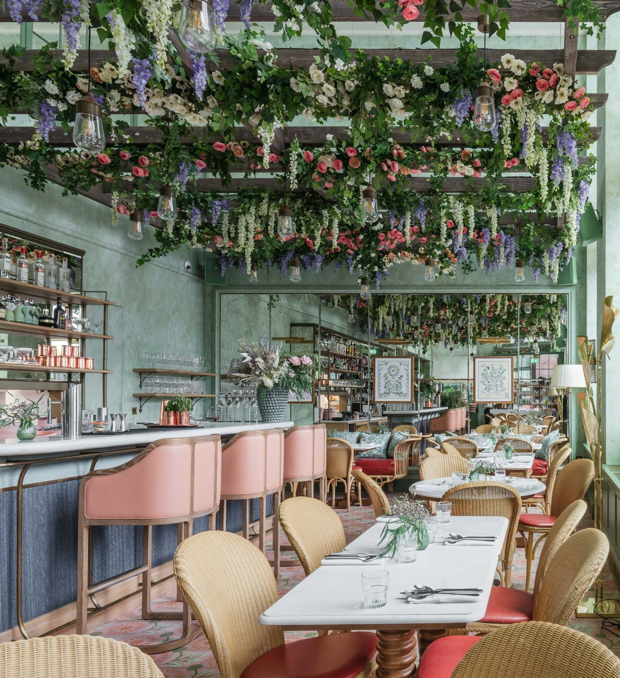 Billing itself as a "luxury hair, beauty and lifestyle destination in the heart of London's Embassy Gardens", Linnaean sure does the beauty part well even when it comes to the decor. With a mirror wall on one end increasing the spaciousness of the otherwise cosy space, wicker patio furniture, light wood tones and bunches of colourful flowers everywhere, the garden setting provides respite from the urban noise outside.