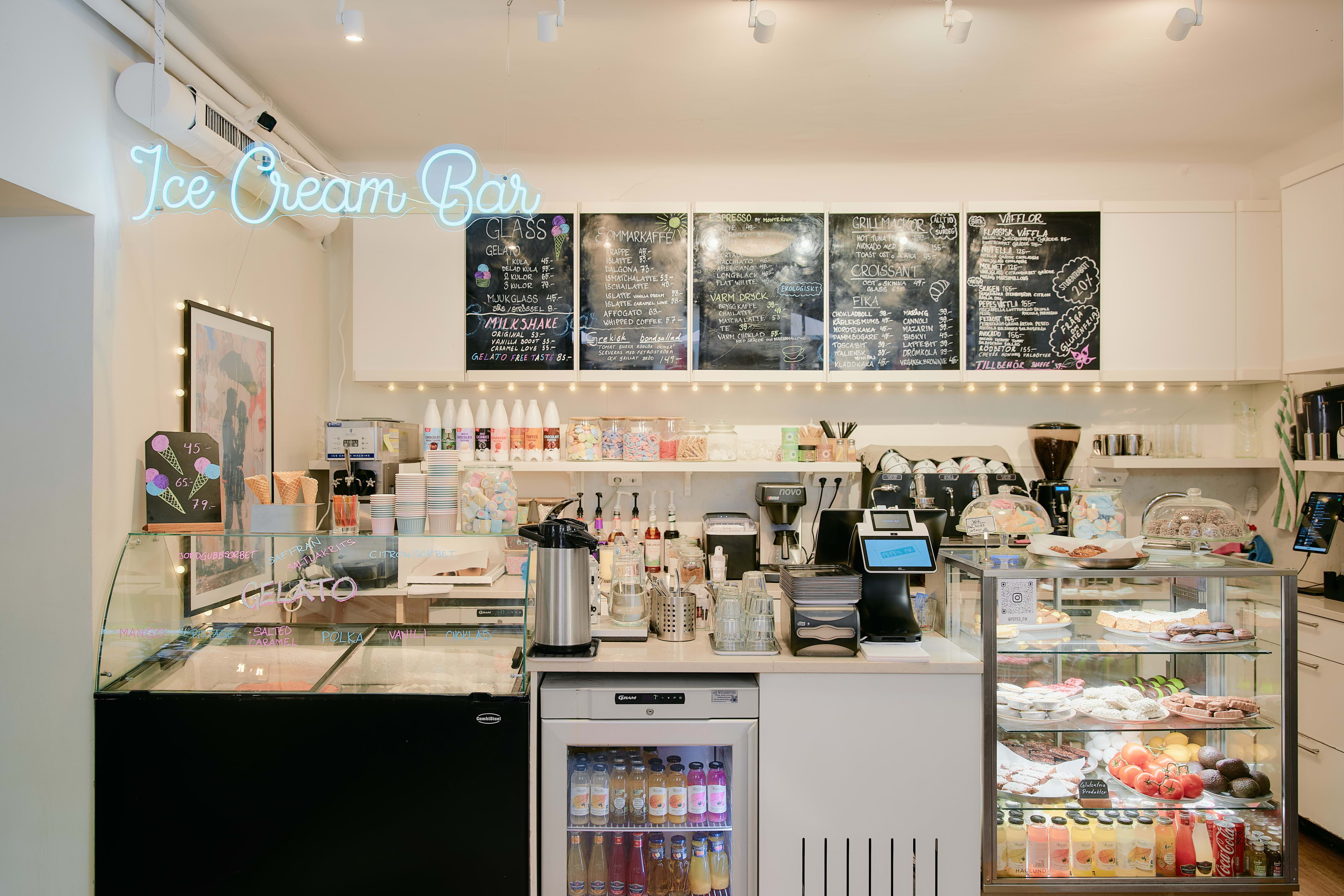 Färgglada Pepe's fik älskar kaffe och sötsaker. Kaffet kommer från Monteriva och görs enligt konstens alla regler. Vill du drömma dig bort till varmare breddgrader? Då ska du självklart satsa på en frappé, som är caféets signaturdryck. Är du hungrig eller sötsugen är det bara att välja mellan våfflor, milkshakes, mackor och glass.