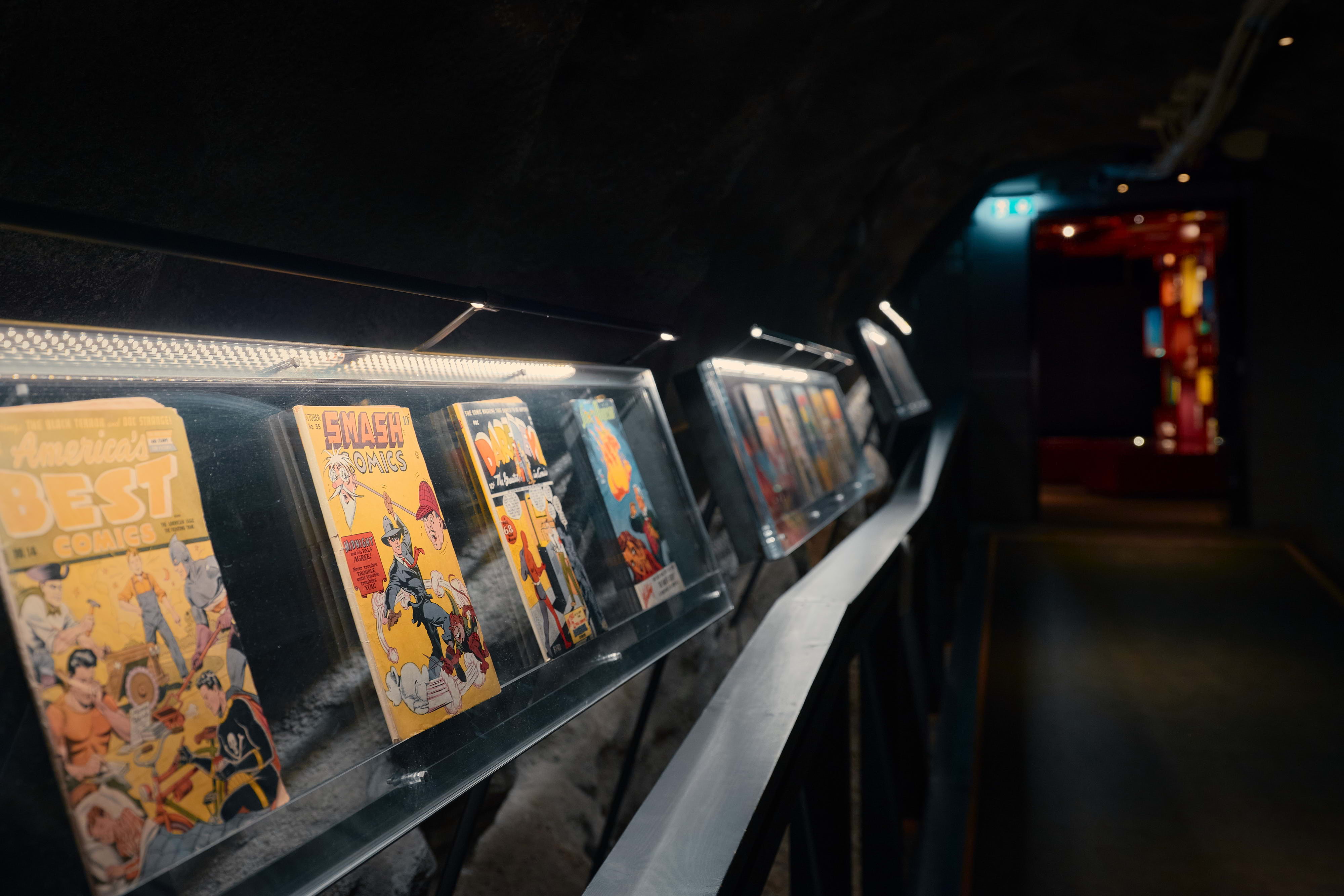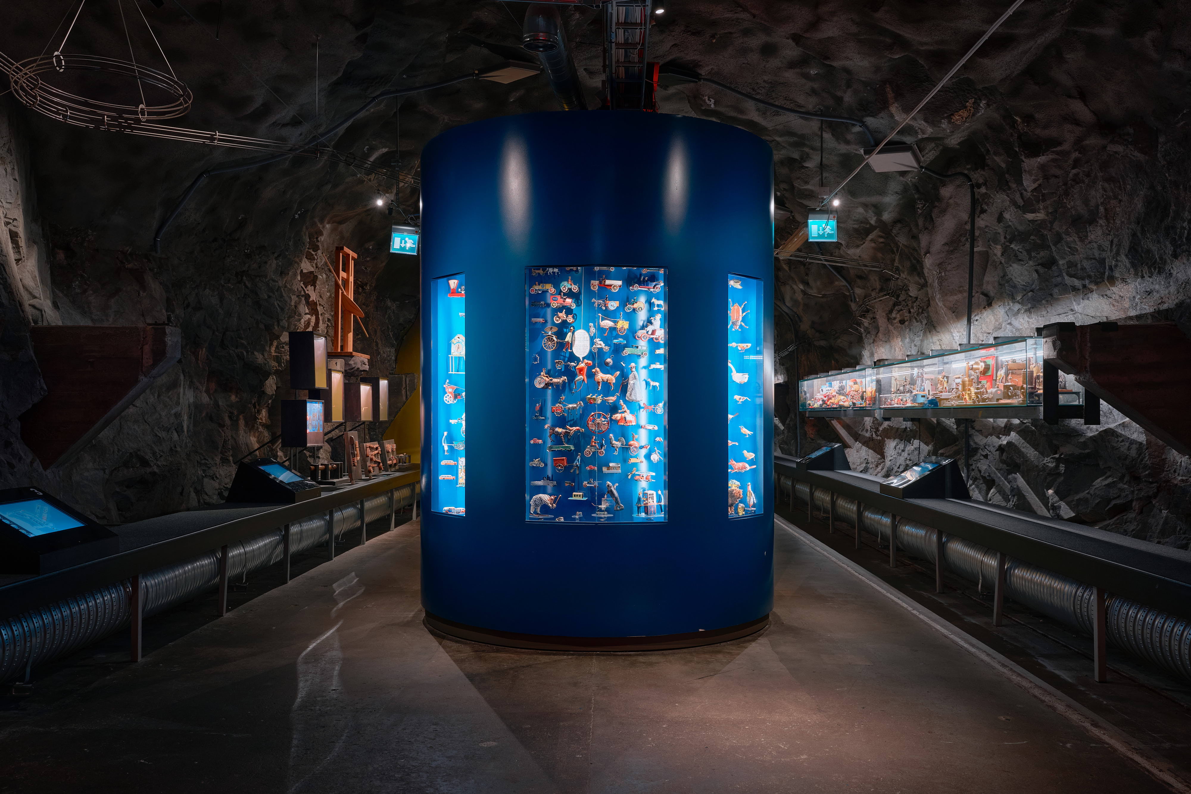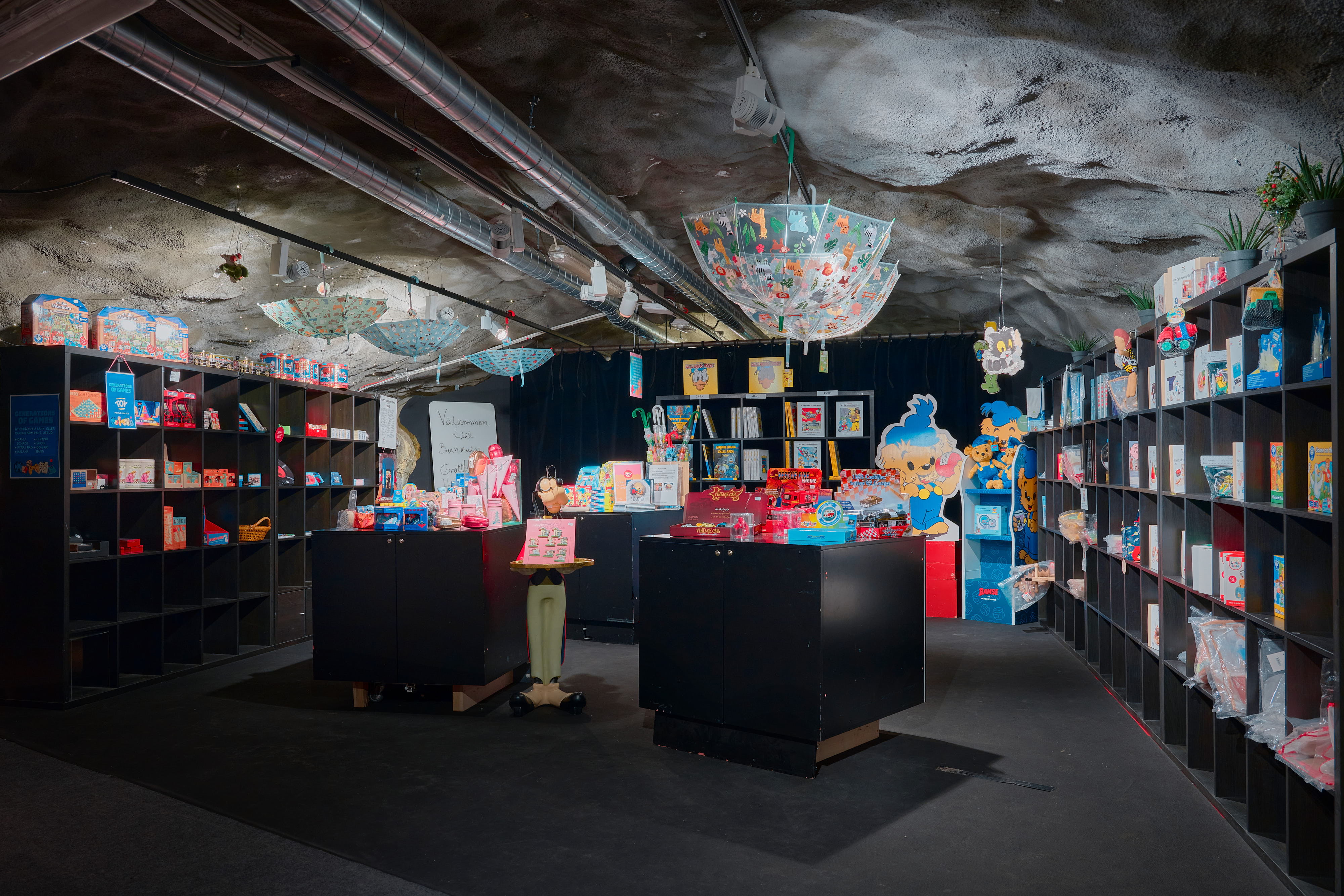I det 2500 kvadratmeter stora museet ringlar sig gångarna långt in i berget på Skeppsholmen, med över 40 000 leksaker, serietidningar och andra föremål. Med hjälp av ljus, ljud, scenografer och konstnärer kommer de nästan till liv.