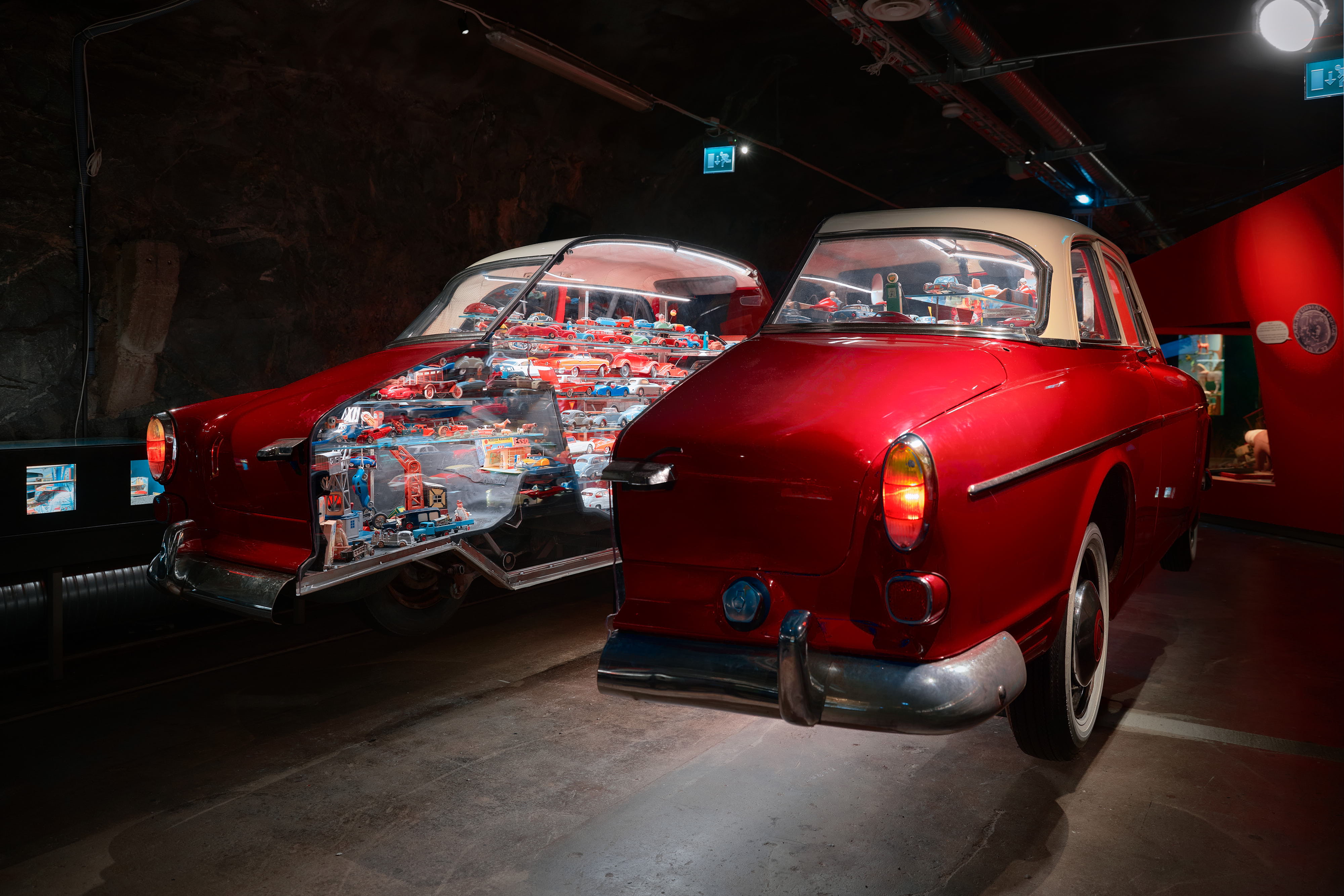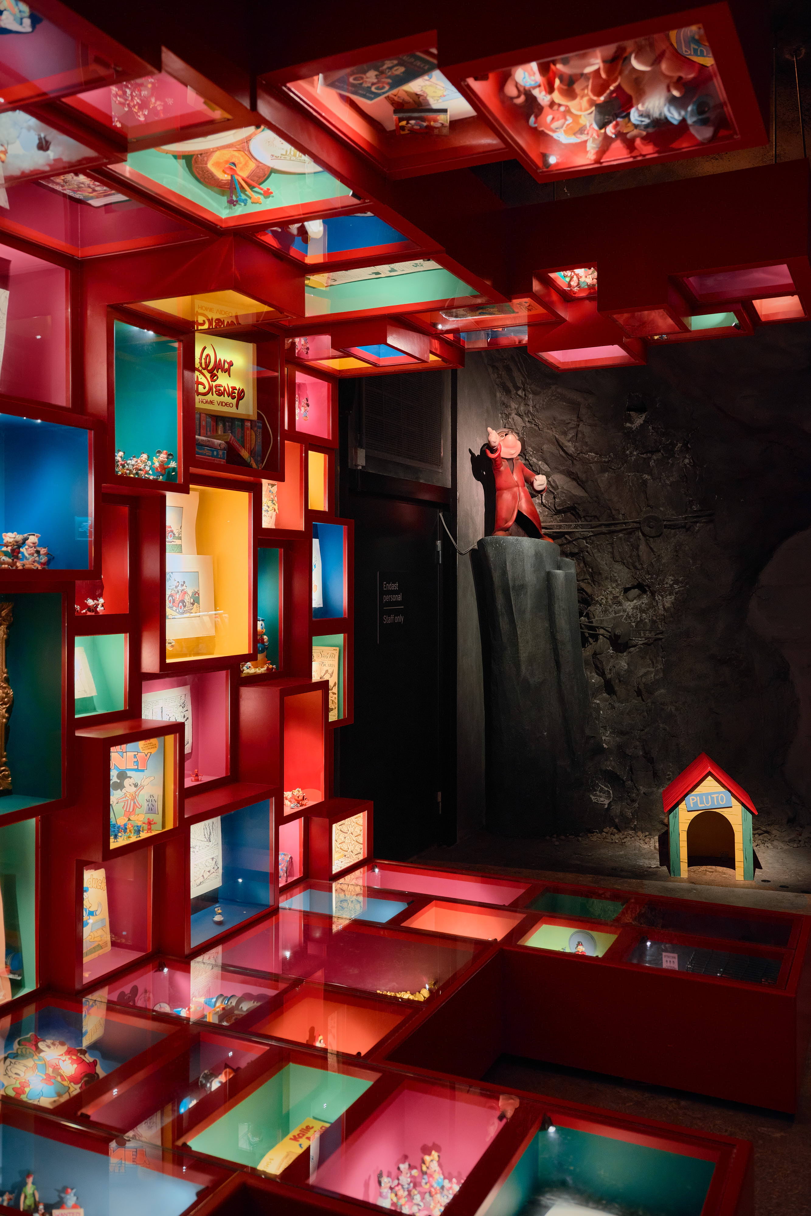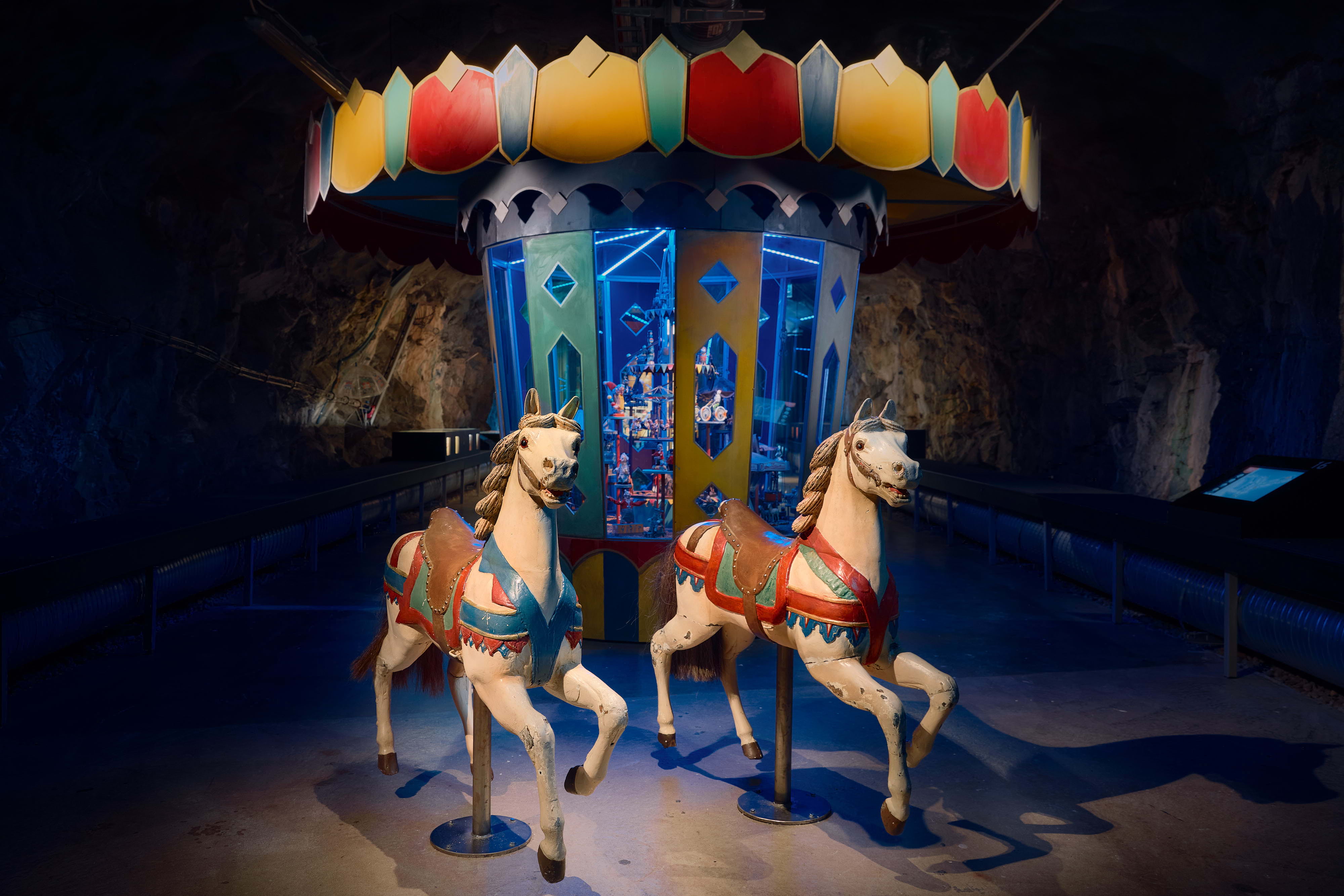 I det 2500 kvadratmeter stora museet ringlar sig gångarna långt in i berget på Skeppsholmen, med över 40 000 leksaker, serietidningar och andra föremål. Med hjälp av ljus, ljud, scenografer och konstnärer kommer de nästan till liv.